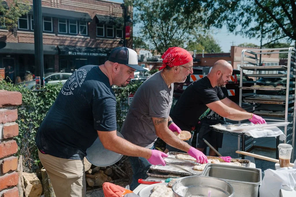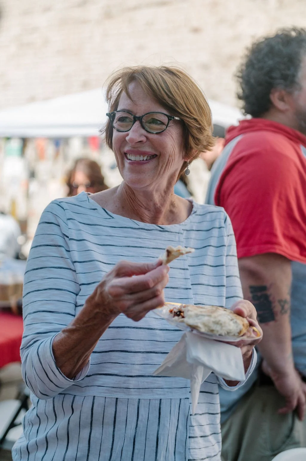 Group fired up the Highland Park outdoor oven after years of sitting dormant. Neighbors were invited to bring their favorite spreads, dips, and toppings and many were homemade.