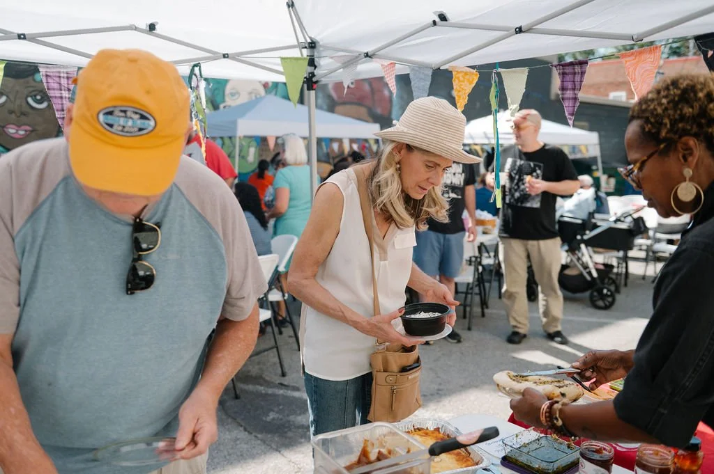 The alleyway next to Chuck’s Restaurant was activated with bread backing, art activities, live DJ, games, and more. The neighbors came out and the day was lively